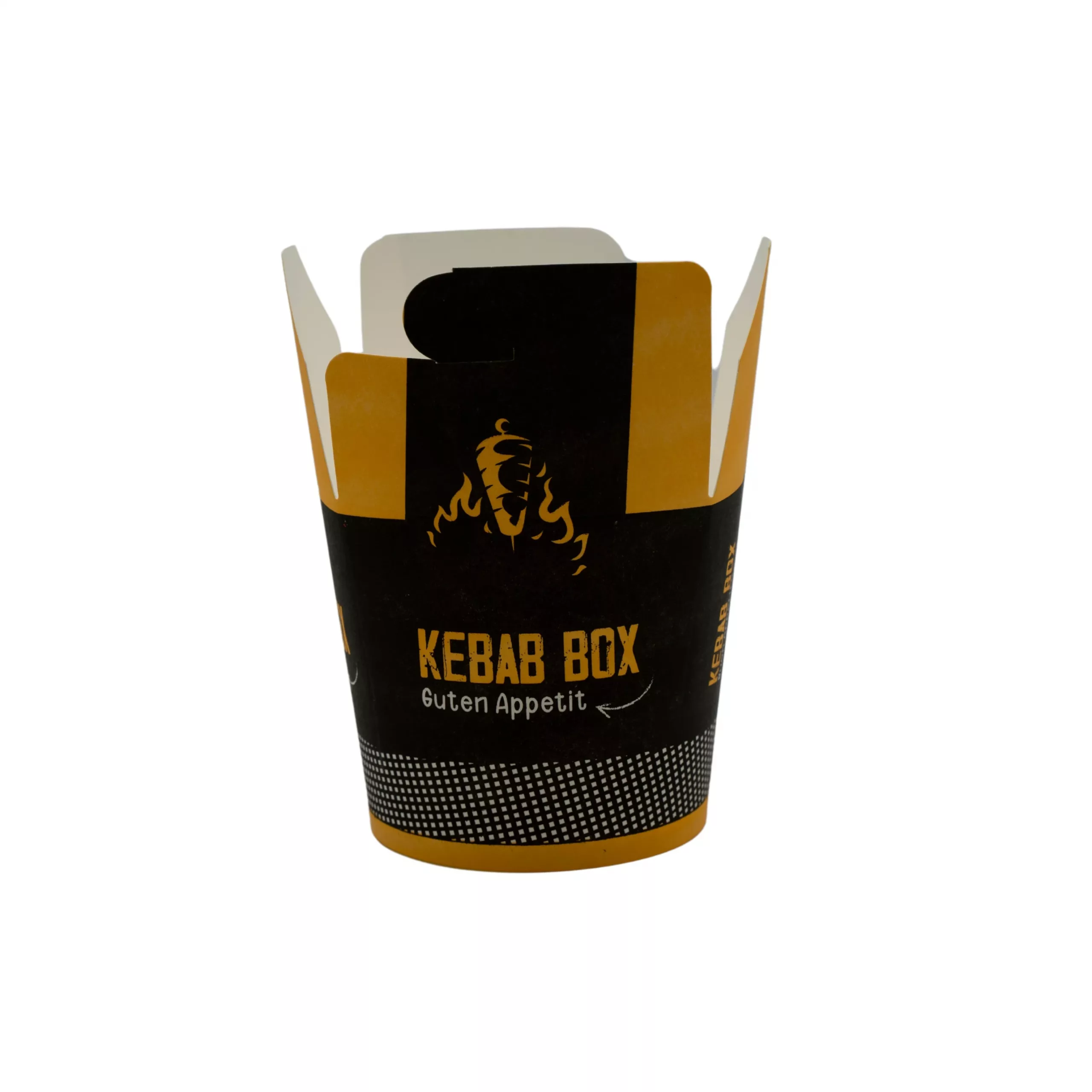 Take your döner box offerings to the next level with our 26 oz fold-top box, proudly made in Germany. The “Kebab Box” theme printed on it adds a touch of authenticity and visual appeal, instantly catching the attention of your customers. Let our box become a reflection of your dedication to quality and your passion for serving delectable dishes.